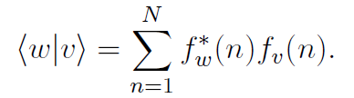 Later on in this book, we are going to encounter vector spaces, in which the vectors are functions of continuous variables. A lot of students get confused transferring what they know about linear algebra into the context of function spaces, so it is worth explaining that we can always think of linear algebra in terms of functions. If vn are the components of a vector |v〉 in some basis, then we can associate with them a complex valued function, defined on the finite set of integers from 1 to N, by the rule