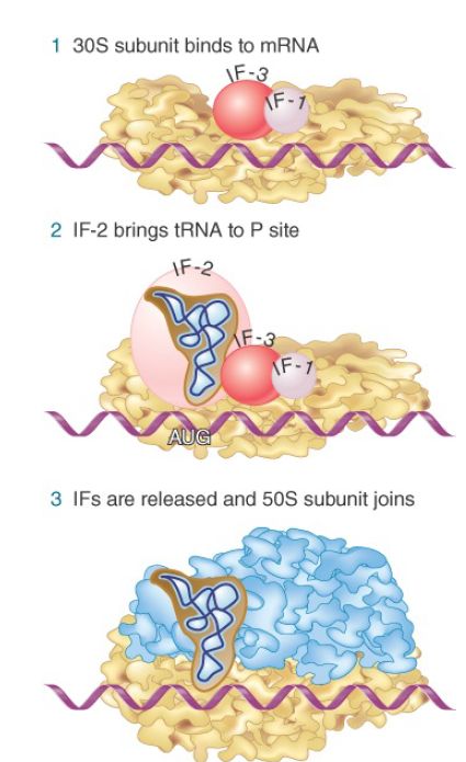- IF-3 must be released to allow the 50S subunit to join the 30S-mRNA complex.