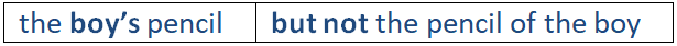 The -’s possessive is generally used only with nouns referring to animate items (e.g. people and animals) and in time phrases.