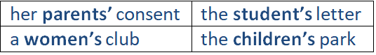 by adding -’s to a singular noun, or an irregular plural noun that does not end in -s.