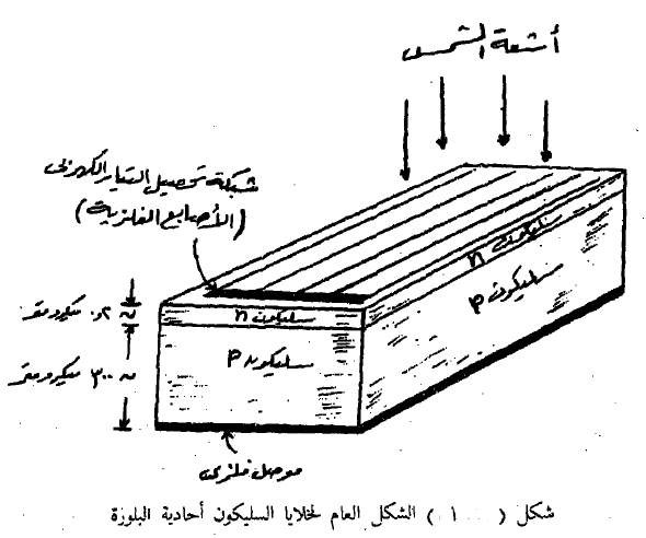 وتصنع الحلايا المستخدمة في أغراض الفضاء على شكل مربعات أو مستطيلات تتاوح بين أربع ستيمترات مربعة إلى إثنى عشر ستتيمترا مربعا - حيث يمكن رصها بجوار بعضها دون ترك أي فراغ بينها وبذلك تبلغ لإستفادة من المساحة المتوفرة حدها لأعظم , اما الخلايا التي تستخدم على سطح الأرض فتصنع على شكل دائري بقطر يتراوح بين سنتيمترين) إلى عشرة سنتيمتزات . وتتراوح كفاءة التحويل (من طاقة شمسية البطاقة كهريائية) بين ١٢إلى ١٤ %. ويوضح شكل (٣- ٣١) الشكل العام لمثل هذه الخلايا .