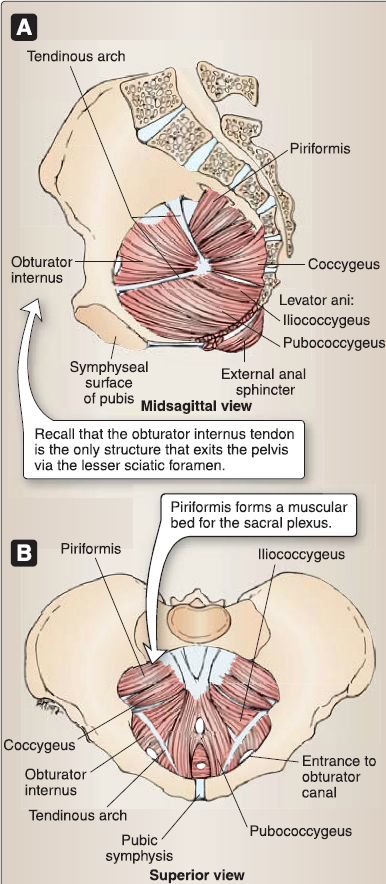 Muscles of the pelvic wall assist in supporting pelvic viscera by partially closing off the pelvic outlet (Fig. 1). These muscles include obturator internus, piriformis, coccygeus, and levator ani, with the latter two forming the pelvic diaphragm. Obturator internus and piriformis externally rotate the thigh a.Pelvic fascia provides additional support and protection to pelvic viscera.