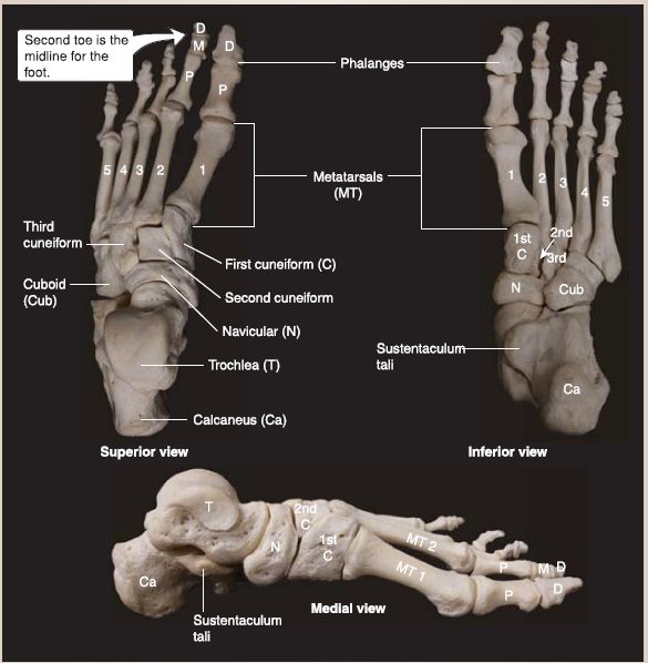Figure 5 : Osteology of the foot. D = distal, M = middle, P = proximal.