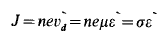 حيث تعرف μ بإسم حركية الإلكترونات (ووحدتها متر2/فولت. ثانية). وهكذا نجد أن حركة الإلكترونات أصبحت تتكون من مركبتين إحداهما عشوائية والأخرى إنسياقية ولها إتجاه محدد، وبذلك يمر تيار كهربي. فإذا عبرنا عن كثافة الإلكترونات الحرة بالرمز J (هو عبارة عن عدد الإلكترونات في المعدن لكل متر3) تكون كثافة التيار ل (الأمبير/متر2) هي