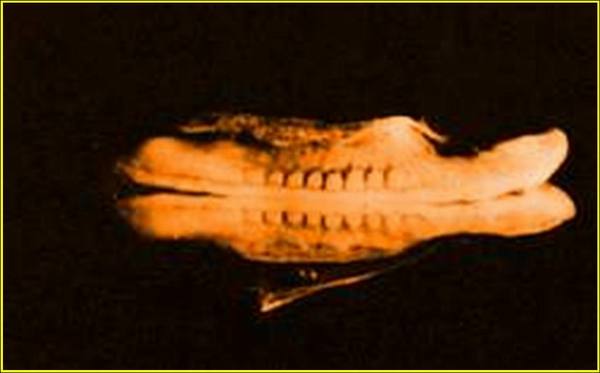- جنين عمره 7-8 أسابيع وتظهر عليه بدايات مرحلة اللحم حيث تُكسى العظام بالعضلات ، في بداية الأسبوع الثامن تبدأ العضلات بالحركة. كما يبدأ تشكل طبقات الجلد الذي يغلف الجسم ، وانظروا معي إلى قوله تعالى : (وَانْظُرْ إِلَى الْعِظَامِ كَيْفَ نُنْشِرُهَا ثُمَّ نَكْسُوهَا لَحْمًا) [البقرة : 259]. طول الجنين الآن أقل من 3 سم في هذه المرحلة تبدأ العضلات بالتشكل ، وتبدأ هذه العضلات بتغليف العظام ، وتستمر هذه المرحلة طويلاً وتتداخل مع المرحلة التي تليها ، أي مرحلة العظام. يقول تعالى : (فَكَسَوْنَا الْعِظَامَ لَحْمًا ). أما المشيمة فتقوم بتغذية الجنين بالهواء والطعام والشراب ، ولا تسمح بمرور المواد المؤذية ، وتنتج الهرمونات التي تنظم درجة حرارة الجنين ، ويقول العلماء إن المشيمة تعمل على العناية بالجنين بشكل أفضل من أي غرف عناية مشددة ، فسبحان الله !