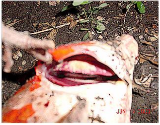 شكل يبين مقطع في الغلاصم يبين تضخم واتحاد الصفائح الغلصمية الناتج عن مرض الغلصمة البكتيري
