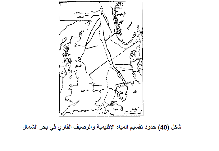 ويتفاوت عرض الرصيف - وفقا لشكل ومورفولوجية قيعان البحار - أمام سواحل الدول، فقد يصل إلى عمق ١٠٠ قامة، وأحيانا إلى ٣٠٠ قامة، وفي بعض الجهات قد ينعدم الرصيف القاري بالمرة، حين تنحدر السواحل انحدارا كبيرا، ويحل محله المنحدر القاري Con Rise وتزداد مشكلة تحديد الرصيف القاري بمناطق البحار الضحلة مثل البحر البلطي وبحر الشمال والخليج العربي. فغي هذه الحالة يتحدد الرصيف القاري لكل دولة في حدود القسم المواجه لطول سواحلها حتى الخط المنصف للرصيف القاري بين الدولتين المتواجهين وهذا ما نراه في تقسيم المياه الإقليمية والرصيف القاري في بحر الشمال شكل (40).