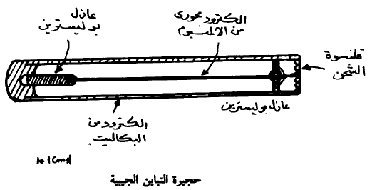 من الداخل بالجرافيت الموصل للكهرباء ومن ثم يعمل هذا الجدار كالكترود موجب. أما الإلكترود السالب فهو عبارة عن سلك متين مثبت على طور محور الأسطوانة ومثبت عند طرفيها بمادة عازلة. ويتم شحن القطبين إلى حوالى 150 فولت باستخدام جهاز يعرف بقارئ الشحنة (Charger - Reader) أو (Minometer). عندما لا يوجد إشعاع يظل فرق الجهد كما هو أما عندما يقط الإشعاع على الجهاز فإن الإيونات الناتجة تعمل على أنقاص فرق الجهد الذي يتناسب مع كمية الإشعاع (ومن ثم الجرعة) الساقطة ويمكن قياس هذا الفرق في الجهد عن طريق معداد كهربي (Electrometer) يلحق بقارئ: الشحنة يمكن قياس الجرعة يومياً بعد انصراف العاملين من حقول الإشعاع.