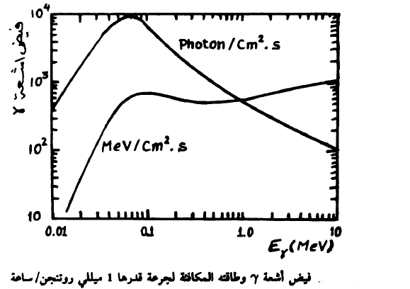 نبين في الشكل (2) فيض أشعة γ وطاقته المكافئة لجرعة قدرها 1 ميللي رونتجن في الساعة.