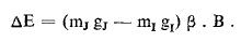 والشكل (1) يعطي مثال عن إحدى الحالات حيث الخطوط المنقطة تعطي تصحيح الطاقة السابق إذا أهملنا mIgI أمام mJgJ فإننا نحصل على نفس مخطط الطاقة لذرة في حقل ضعيف وبدون سبين نووي. لكن يجب أن لاننسى أن كل خط في هذه الخطوط المنقطة تمثل بالحقيقة (1 + 2I) خط متجاورة ومميزة مطابقة لمختلف قيم mI لنطبق الان الإضطراب :