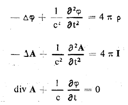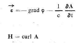 فإذا استخدمنا الكمون السلمي φ وشعاع الكمون A واللذان يحققان العلاقات التالية: