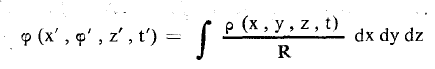 هي المسافة بين عنصر الحجم dx dy dz والنقطة 'x' y' z . وهذا معروف بكمون التأخير.