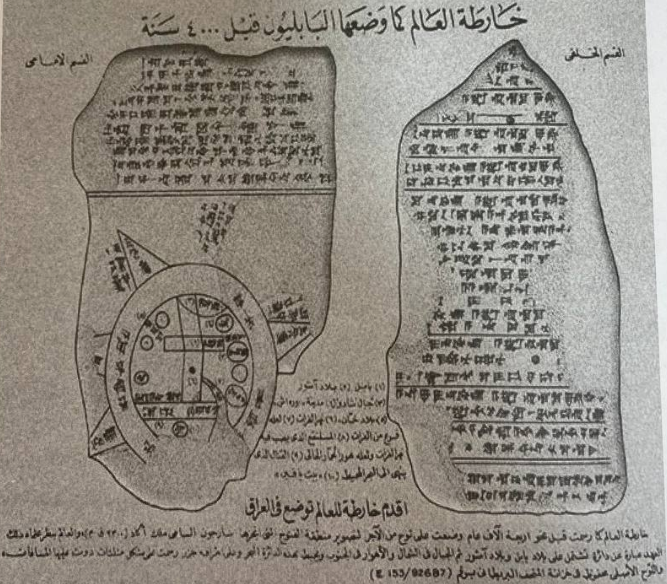 الشكل (2) خريطة العالم كما وضعها البابليون قبل 4000 سنة. الالواح الطينية/ محفوظة في المتحف البريطاني وتحت رقم (153/92687).