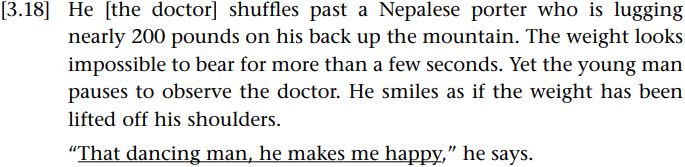 Here, the referent of dancing man (i.e. the doctor) has been introduced earlier, as has, before this quotation, the fact that he dances on the way up the mountain. That dancing man involves old information and is the topic. He co-refers to the same dancing doctor and is thus obviously old information. The remainder contains new information and is the semantic focus. However, in this foregrounded structure, it is the topic that seems to be more salient. The implication seems to be that this topic in particular is worthy of comment. We should also remember that in conversation flagging the topic in this way enables one to hold the conversational floor while formulating the comment one wants to make. Left-dislocated phrases can in fact contain new information, although this is not typical of semantic topics. Consider the first line of this English nursery rhyme: “The three little kittens, they lost their mittens.” The notion of the three little kittens is entirely new (of course, the presence of this structure here may be partly to facilitate the rhythm and the rhyme scheme).