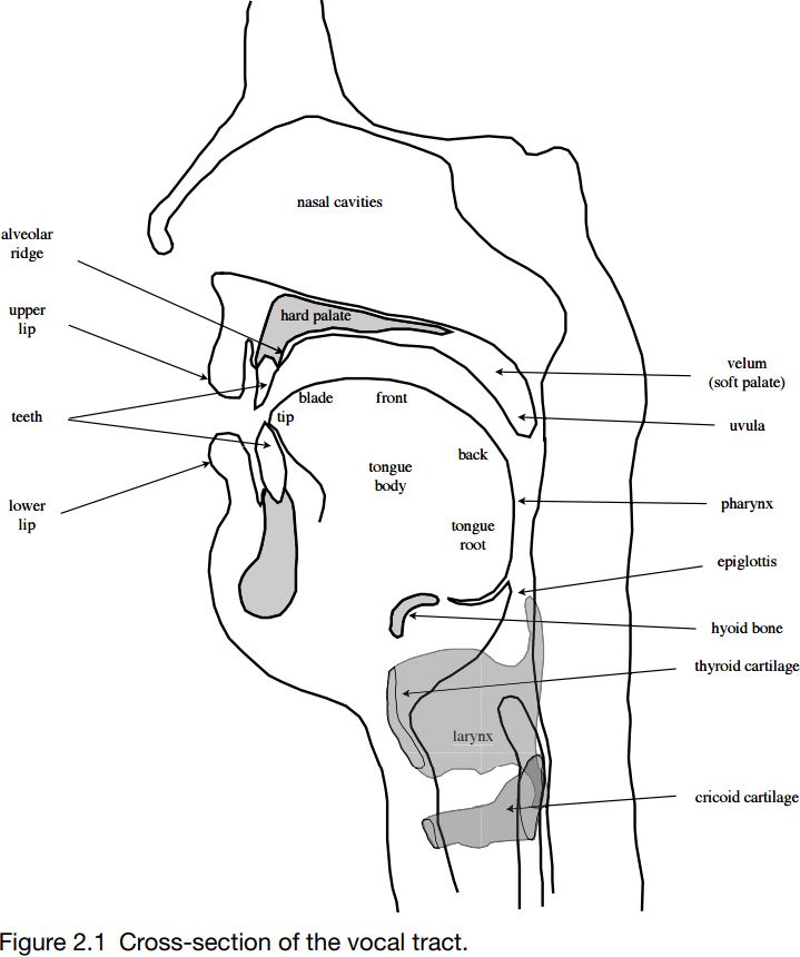 You can sense voicing by a simple experiment. Say the sound [m] but put your hands over your ears. You will hear quite a loud buzzing which is conducted through your bones to your ears. Now repeat this saying a [s] sound, and you will notice that the buzzing stops. Instead, you will hear a (much quieter) hissing sound, which is due to the turbulent airflow near the back of the teeth. If you now say a [z] sound, you will notice that everything is the same as for [s], except that there is the buzzing sound because [z] is voiced. Voicing is caused by the very rapid vibration of the vocal folds. Voicing is one of the most important features of speech sounds, and we will look at it in more detail manner.
