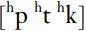 The other source of noise is turbulence at the glottis. This source of noise is transcribed as e.g.