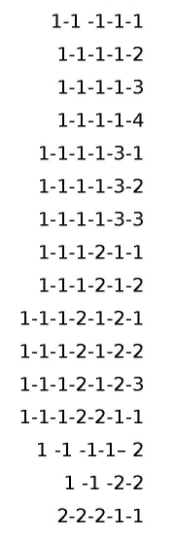 2-- 1- 2 --- 1 ------ 1 ---- 1----- 1