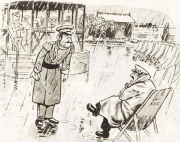 The man was sitting in a chair, wearing a waterproof hat and coat. After an hour, the conductor of the band went to this man and inquired whether he had a special request.