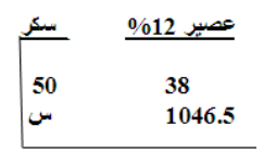 اذن كل 1046.5 كغم عصير يضاف لها سكر مقداره 50 × 1046.5 ÷ 38