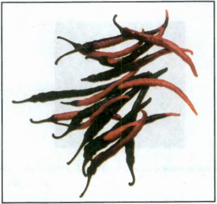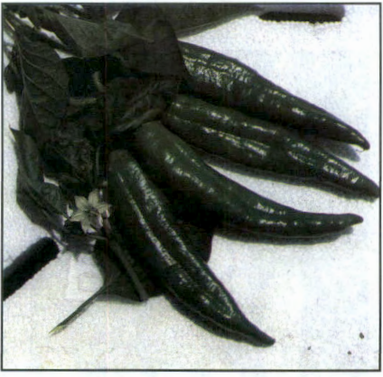 تحمل الثمار إلى أعلى، وتظهر فوق مستوى النمو الخضري، وتبلغ أبعادها 1×6 سم (شكل 14). يتغير لون الثمار عند نضجها من اللون الأخضر المتوسط، إلى البرتقالى، فالأحمر. تستعمل الثمار إما طازجة وإما مجففة، وهي شديدة الحرافة. النباتات متوسطة الاندماج، ويبلغ انتشارها الجانبي حوالى 60 سم، ومبكرة.