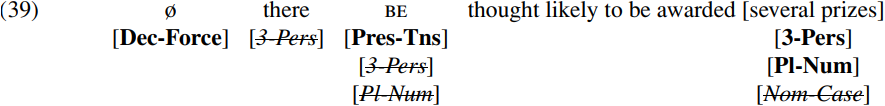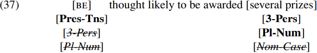 Via Feature-Deletion (14), the probe BE deletes the uninterpretable nominative case feature on several prizes, since BE is