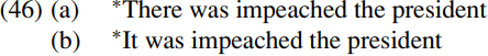 However, our so-called ‘generalization’ in (45) is little more than a descriptive stipulation, and begs the question of why the relevant restrictions on the use of expletives should hold. A preferable solution would be to see the choice between expletive there and expletive it as one rooted in UG principles.