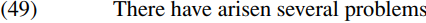 The verb arise is an unaccusative predicate which projects a complement, but no thematic subject. Precisely because it projects no thematic subject, it can project an expletive subject (on Bowers’s assumption that a predicate only allows an expletive subject if it has no thematic subject). This means that expletive there will initially be merged as the specifier of the VP headed by arisen in (49), so that at the stage of derivation when HAVE is merged with its VP complement, we have the structure shown in (50) below: