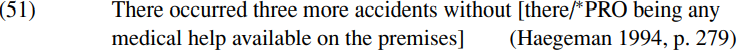 A potential problem posed by analyzing expletive there as a (perhaps locative) quasi-argument initially merged in spec-VP is that (unlike expletive it in sentences such as (31) above) expletive there cannot serve as a controller for PRO – as we see from (51) below: