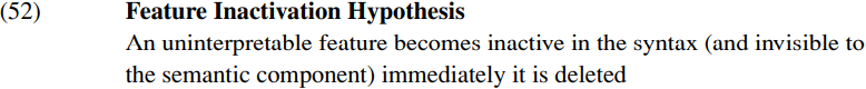 We have thus deleted all uninterpretable case/agreement features on both probe and goal, as required.