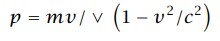 حيث أن هذا ليس الوضع في النسبية. فمثلما وجب علينا تعديل أفكارنا بشأن الزمان والطول، تتطلب منا النسبية أيضا أن نعيد تعريف مفهوم الزخم؛ ومن ثَم، يمكن كتابة التعبير الرياضي الخاص بالزخم على النحو التالي: