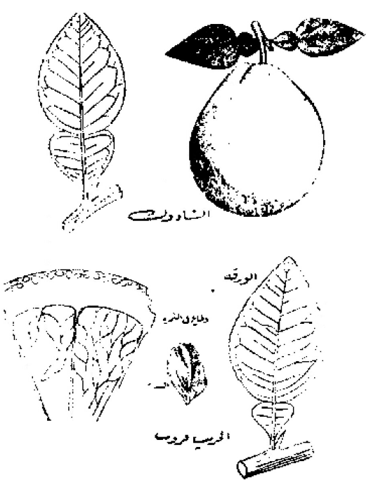 شكل يبين مقارنة بين ثمرتي كل من الجريب فروت والشادوك ( البوملي ) وحجم الجناح فيهما