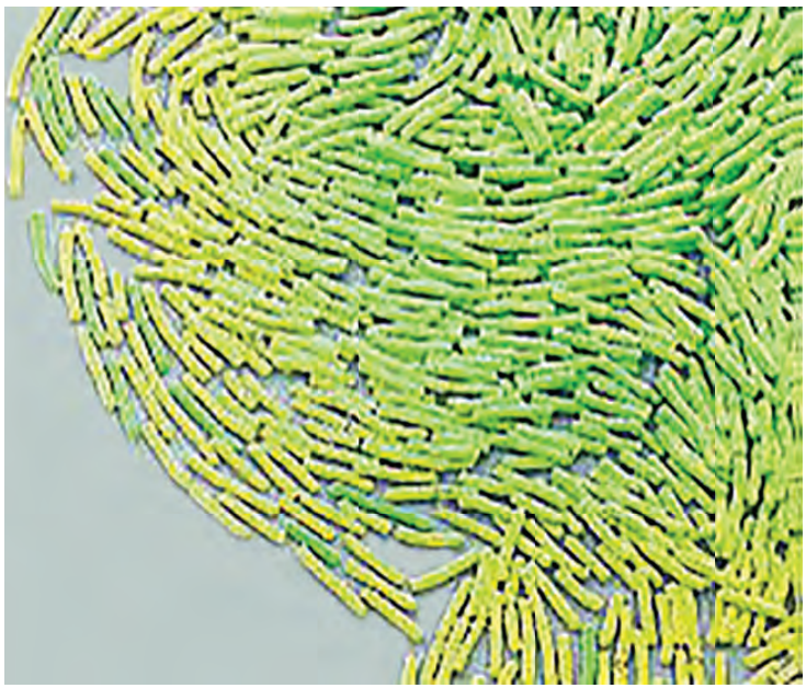 شكل 8-3: خلايا البكتيريا Bacillus megaterium في مستعمرة مصورة بالمجهر الإلكتروني الماسح x2000. عن Science Photo Library/Alamy Stock