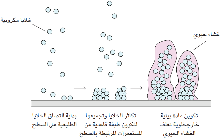 شكل 8-4: رسم تخطيطي لعملية بناء الغشاء الحيوي. عن: Current Biology.
