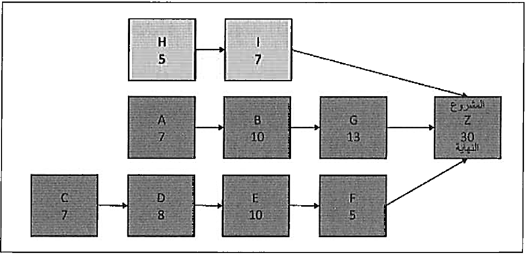 بالنظر إلى المخطط ، فإن النشاط الذي يمكن تسريع العمل فيه بأسعار معقولة على طول المسار الحرج هو النشاط . حيث يمكن تسريع العمل في هذا النشاط يومين قبل أن ينتقل المسار الحرج إلى أنشطة أخرى. بعد تسريع العمل في النشاط 6 بيومين، تبدو الجدولة الزمنية كما في الشكل (2).