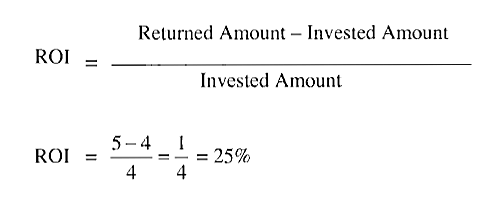 إذا كان المتوسط المتوقع لمبلغ الاستثمار في أحد المشاريع يساوي 4 مليون دولار، وقيمة العائد المتوقع لهذا الاستثمار تساوي 5 مليون دولار، فما هو معدل العائد على الاستثمار (ROI) لهذا المشروع.