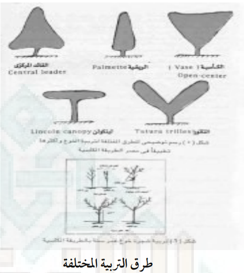 هناك الكثير من طرق التربية للخوخ تتوقف على مسافات الزراعة والاصناف ومن طرق التربية المعروفة.