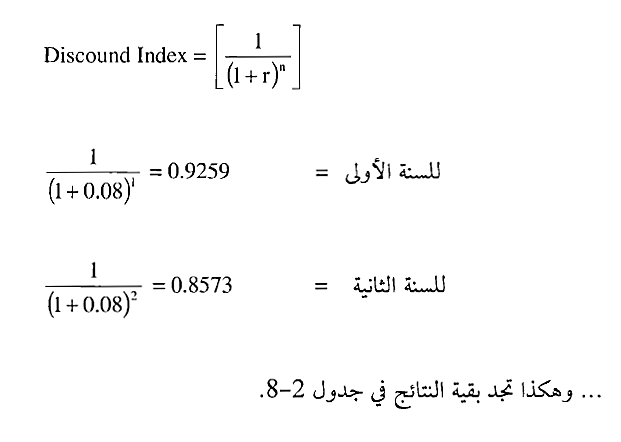 • حساب معامل الخصم، كما تم في الفرع السابق لنفس المثال. والنتائج موجودة في جدول 2 ـــ 8