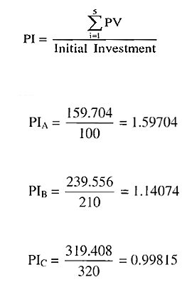 ملاحظة: نلاحظ أن مشروع A هو الذي تم اختياره باستخدام كل النماذج الواردة في المثال، وهذا دليل انسجام واتساق في استخدام هذه النماذج لتقييم واختيار المشاريع.