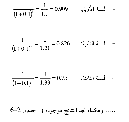 • نقوم باحتساب معامل الخصم لكل سنة من السنوات على النحو التالي: