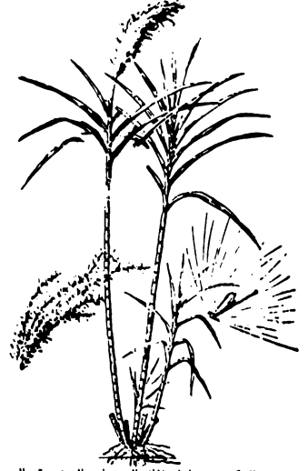 شكل يبين نبات القصب السكري بما في ذلك التفرعات الخضرية والمجاميع الزهرية .