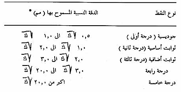جدول رقم (1) النقط المساحية والدقة الأفقية النسبية المسموح بها