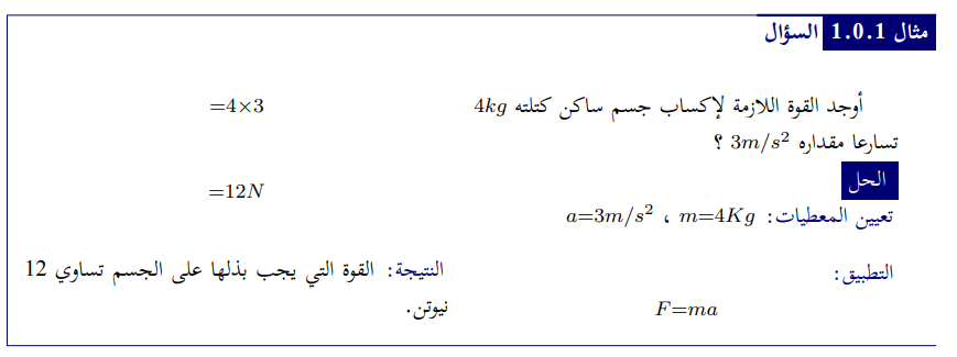 حيث F القوة N، m الكتلة Kg، aالتسارع 2m/s .