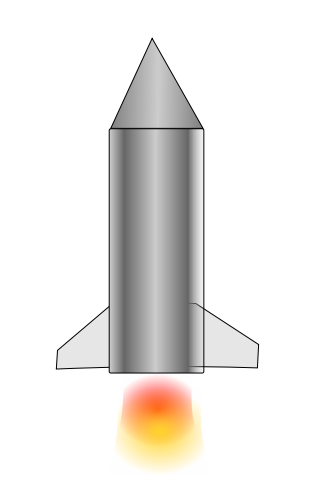 شكل 1.3 قانون نيوتن الثالث: قوة الدفاع الغاز تولد قوة رد فعل ترفع الصاروخ.