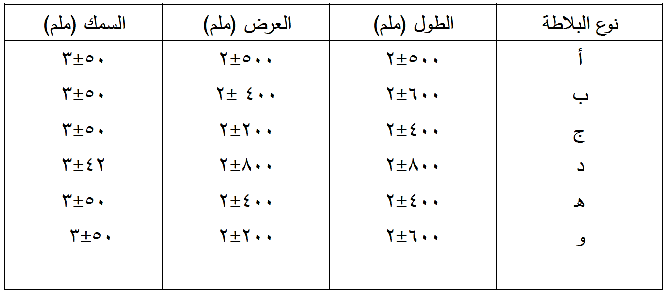 تنتج البلاطات بموجب الابعاد المبينة في الجدول ( رقم12-4) .