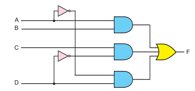 F = A B + C D̅ + A̅ D