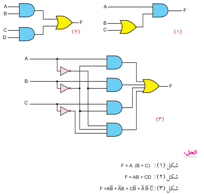 ارسم الاقتران التالي باستخدام البوابات المنطقية:
