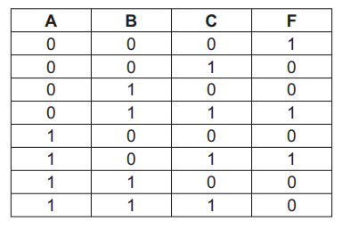 لاستنتاج الاقتران من جدول الصواب نقوم بتحديد المخرجات التي ناتجها مساو للواحد ومن ثم نبدأ باستنتاج المدخلات حيث يتم التعبير 0 ⇐ A ⇐ 1, Ā وهكذا: