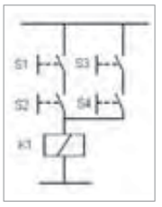 يبين الشكل (29) المخطط الكهربائي المجموعة موصولة من التلامسات على التوازي مع مجموعة موصولة أخرى من التلامسات.