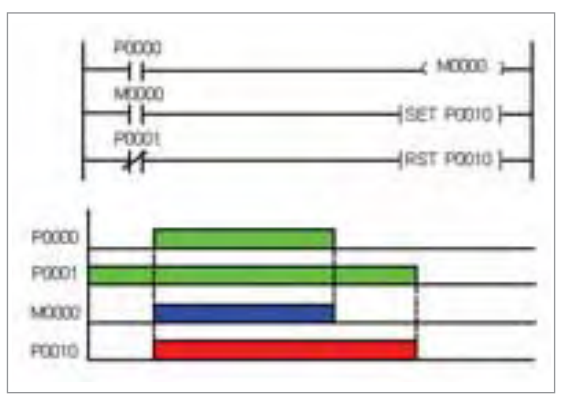وهي إحدى الوظائف الهامة في المتحكمات المنطقية المبرمجة. ففي حالة الوضع (SET) يتم وضع أي تشغيل أي مخرج أو مرحل داخلي بواسطة إعطاء إشارة لحظية من مدخل أو من مرحل داخلي اخر أو غيره، حيث يبقى العنوان الذي تم تحويله إلى حالة الوضع على تلك الحالة حتى بعد زوال الإشارة إلى أن يتم إعطاء إشارة لحظية أخرى لإعادة الوضع أو التصفير (RESET). ويبين المخطط التالي عمل وكيفية برمجة وظيفة النطاط (الوضع وإعادة الوضع) بواسطة ضاغط للوضع (NO) وضاغط لإعادة الوضع (NC) الشكل (32).