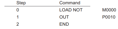 وتستخدم الوظيفة LOAD NOT)) لتحميل ملامس مغلق حيث تأخذ النتيجة المنطقية للوظيفة القيمة (1) إذا كان المرحل M0000 في حالة عدم التشغيل.